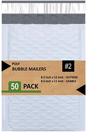 #2 Poly Bubble Mailers 20,5 x 30,5 cm Dolgulu Zarf Postası Su Geçirmez 50’li Paket (PBM8512-50), Beyaz