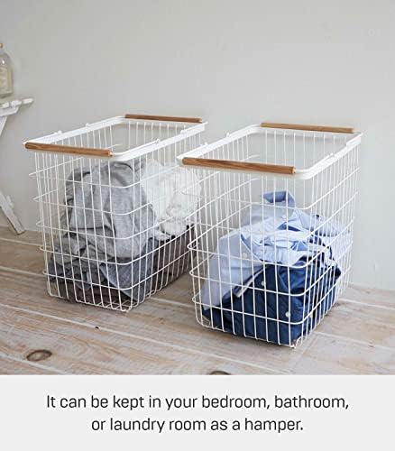 2810 büyük çamaşır sepeti, beyaz, çelik/ahşap, minimalist, 41,5 x 31 x 38,5 cm