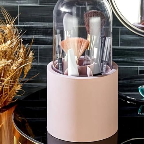 Bölmeli Makyaj Organizeri Şeffaf Kapaklı Büyük Fırça Organizeri Pembe