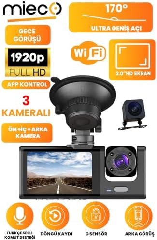 1s Wifi/1920p Fhd/170° Ultra Geniş Açı/gece Görüşü Ve G-sensörü/ 3 Kameralı Araç Kamerası (2025)