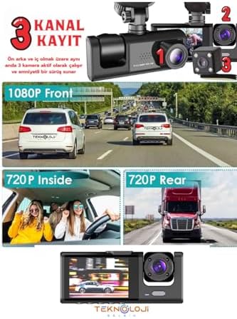 1080P Cam Full Hd Araç içi Kamera Ön Arka ve İç Kayıt 3 Kamera Gece Görüşlü G Sensör Geniş Açı