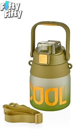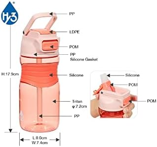 1700ml Çift Renk Pipetli Taşıma Askılı Kulplu Softtouch Motivasyon Su Matarası (Pembe-Mavi)