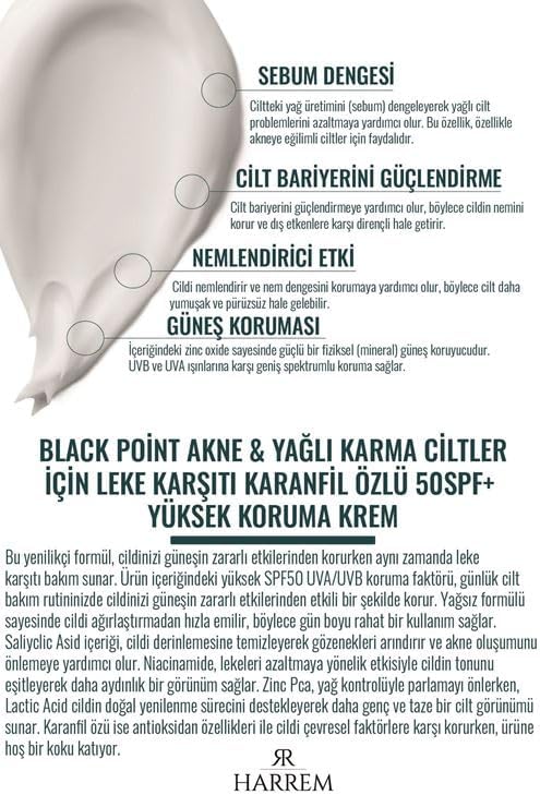 Akneli&Yağlı Ciltler Leke Karşıtı Yüksek Koruyucu Yağsız SPF50 UVA/UVB Güneş Kremi 50 Ml Black P.int