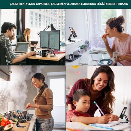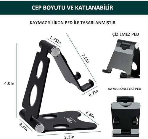 Masaüstü Alüminyum Mobil Stant, Ayarlanabilir Çok Açılı, Katlanabilir/Tutucu Standı, Akıllı Telefonlar, Tabletler Ve Ipad Için, Mobil Stant, Siyah