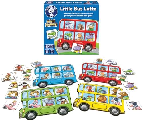 Seyahat Oyun küçük, kompakt ve taşınabilir bir boyutta Mükemmel olarak çorap dolgu. Abstimmungs ve izleme yetenek geliştirilmiştir. Orchard Toys Bus Lotto seyahat Oyun